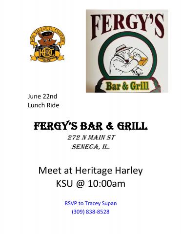 Fergy's Bar & Grill-272 N Main St, Seneca-Meet at Heritage Harley- KSU 10:00am- Tracey Supan