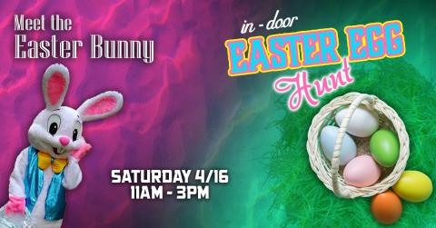 Come bring the family and friends and have a little fun! The Easter Bunny will be here from 11am - 3pm and we will be hosting an in-door Easter egg hunt too!